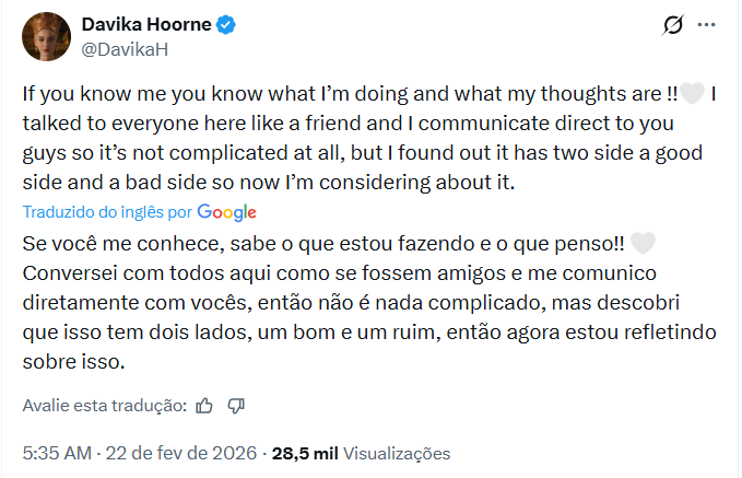 Um dos pontos mais relevantes dessa situação é a postura de Davika. Diferente de muitas gestões que preferem o silêncio, ela optou pela comunicação aberta. Explicou entraves contratuais, revelou tentativas de negociação e deixou claro que também desejava manter o casal.